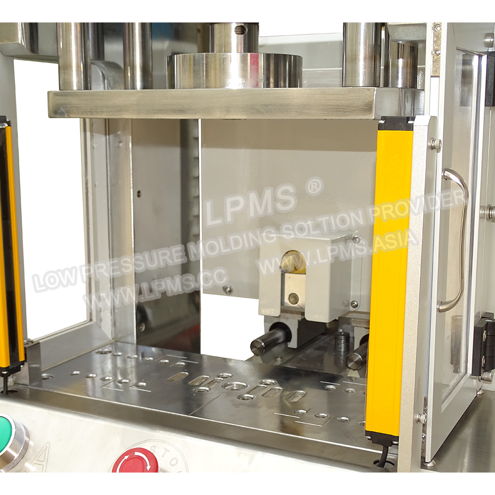 側(cè)式熱熔膠低壓注塑機(jī)系列的注膠咀位於模具側(cè)面,當(dāng)產(chǎn)品較大時模具只能設(shè)計為一模一穴,採用側(cè)式注膠可避免在產(chǎn)品正上方注膠而留下進(jìn)料痕影響產(chǎn)品美觀。適合封裝尺寸較大或外形複雜產(chǎn)品。