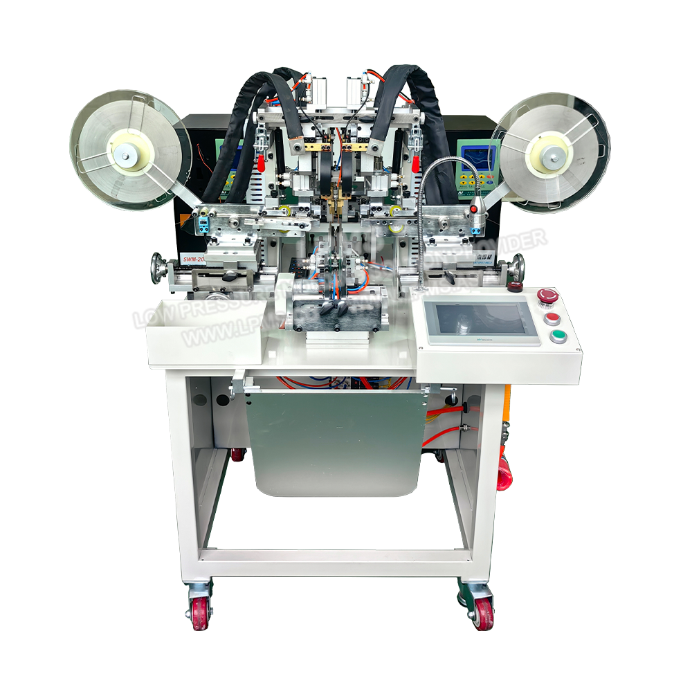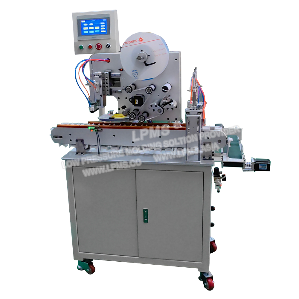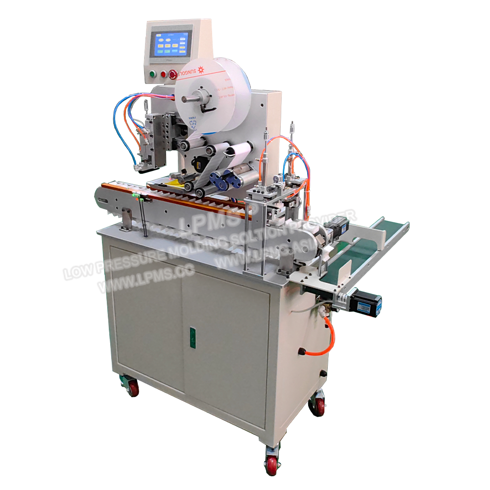 此設(shè)備適用于雙拼圓柱電池圓柱之間圓柱面局部貼EVA棉。采用“定標(biāo)+滾貼方式”。電池放置在傳送帶的卡槽后,自動運行到定標(biāo)位將EVA棉貼到電池上,然后機器自動將電池輸送到滾頭尾位將EVA棉沿電池弧面滾貼壓緊,貼好標(biāo)的電池經(jīng)輸送帶自動流出到流水線上。根據(jù)標(biāo)簽電池旋轉(zhuǎn)角度可設(shè)定、單步,自動/手動可切換,其操作方便、性價比高、性能穩(wěn)定、檢驗精確度高,堅固耐用,貼標(biāo)效果好。