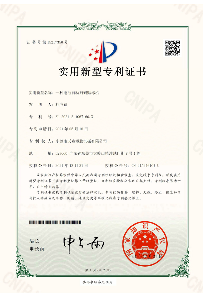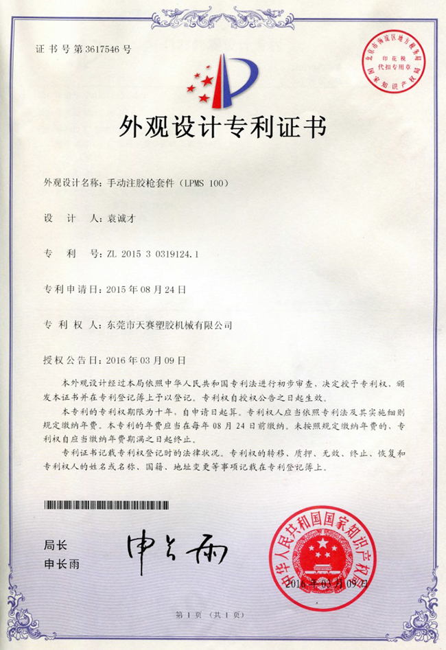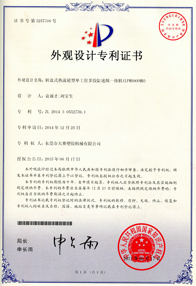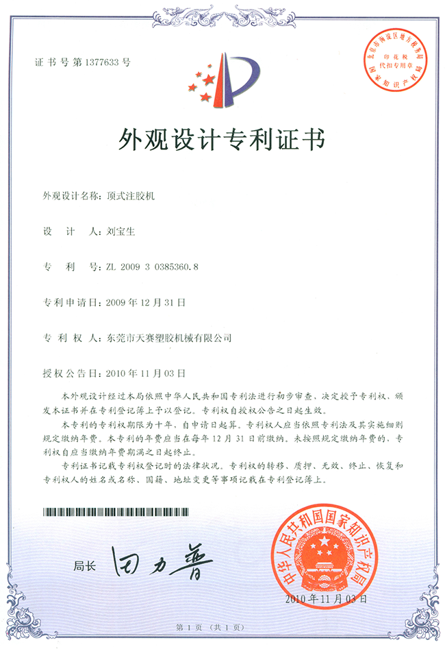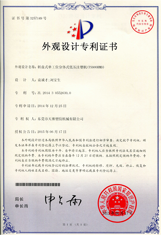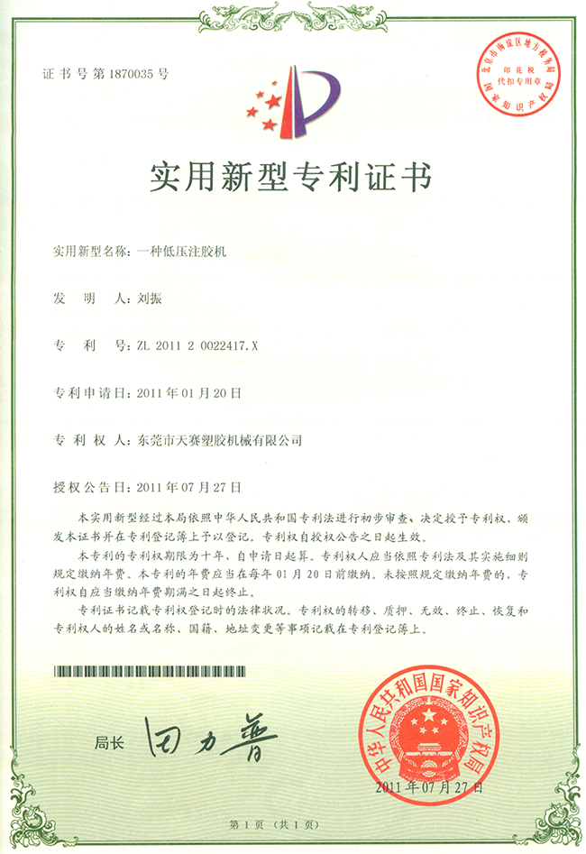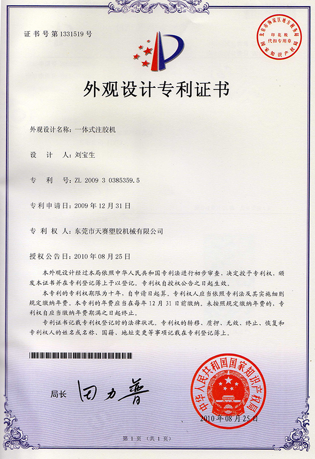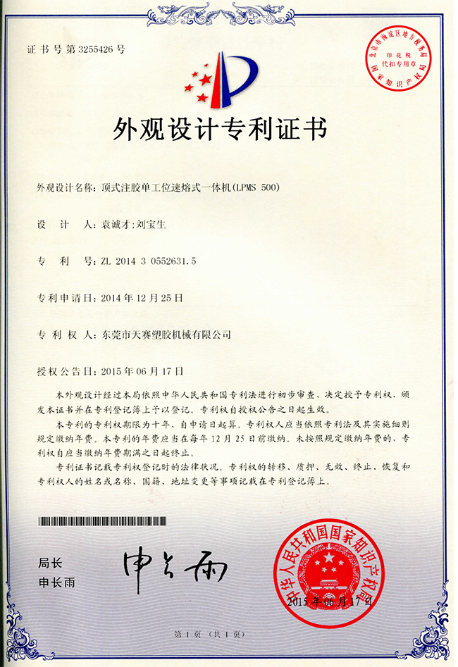 東莞市天賽塑膠機(jī)械有限公司秉持開(kāi)發(fā)創(chuàng)新、品質(zhì)第一、顧客滿意、持續(xù)改進(jìn)的理念,憑藉接近20年的電子產(chǎn)品防水封裝保護(hù)技術(shù)經(jīng)驗(yàn)的沉澱和不斷開(kāi)發(fā)創(chuàng)新的進(jìn)取精神,所研發(fā)的技術(shù)中已經(jīng)幾十項(xiàng)有獲得國(guó)家專(zhuān)利,產(chǎn)品更得到市場(chǎng)的一致好評(píng),公司鞏固了天賽在行業(yè)內(nèi)的領(lǐng)先地位。